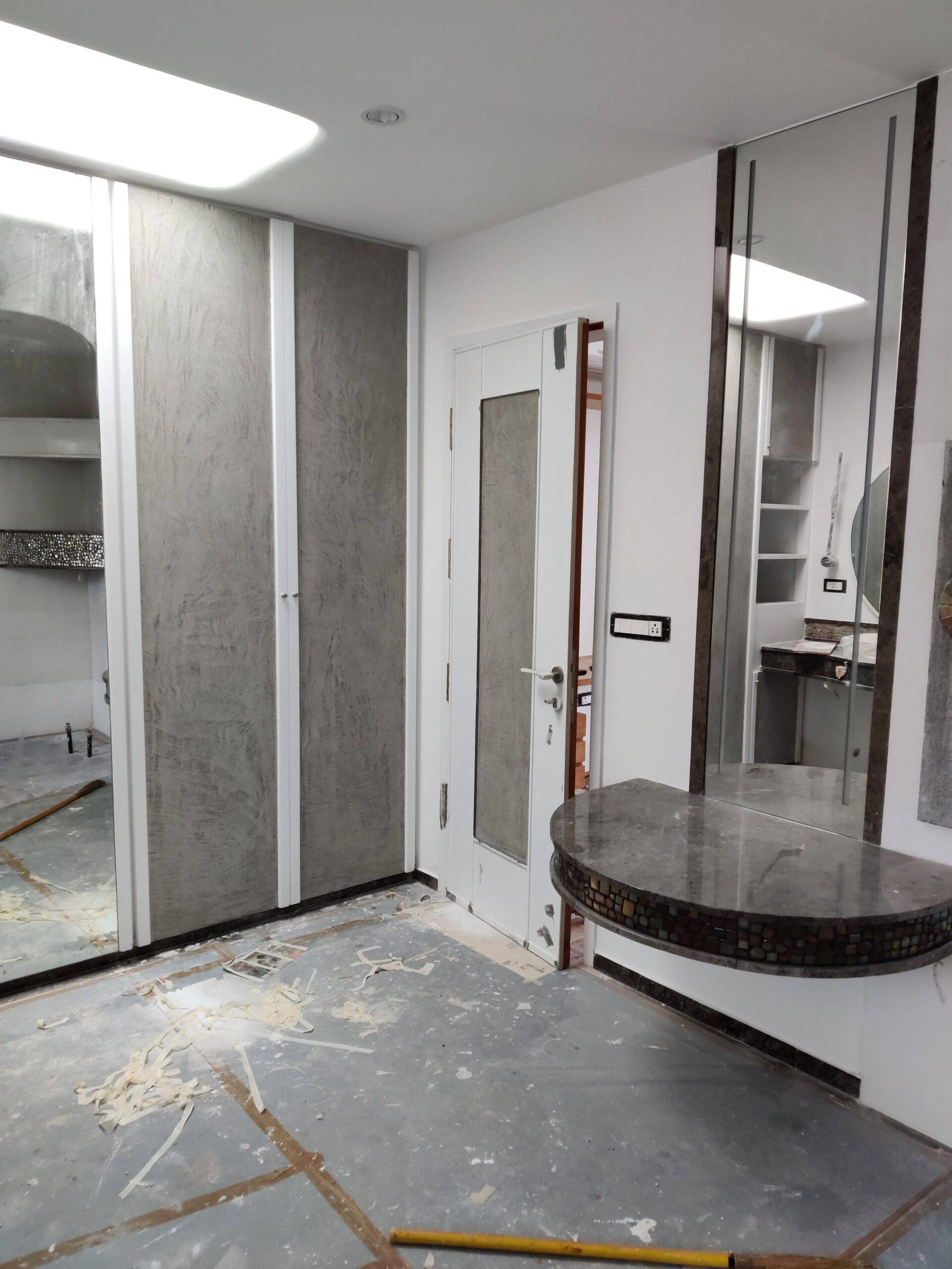 Terrazzo walls, with their smooth and matte finish, added a timeless elegance to the room.